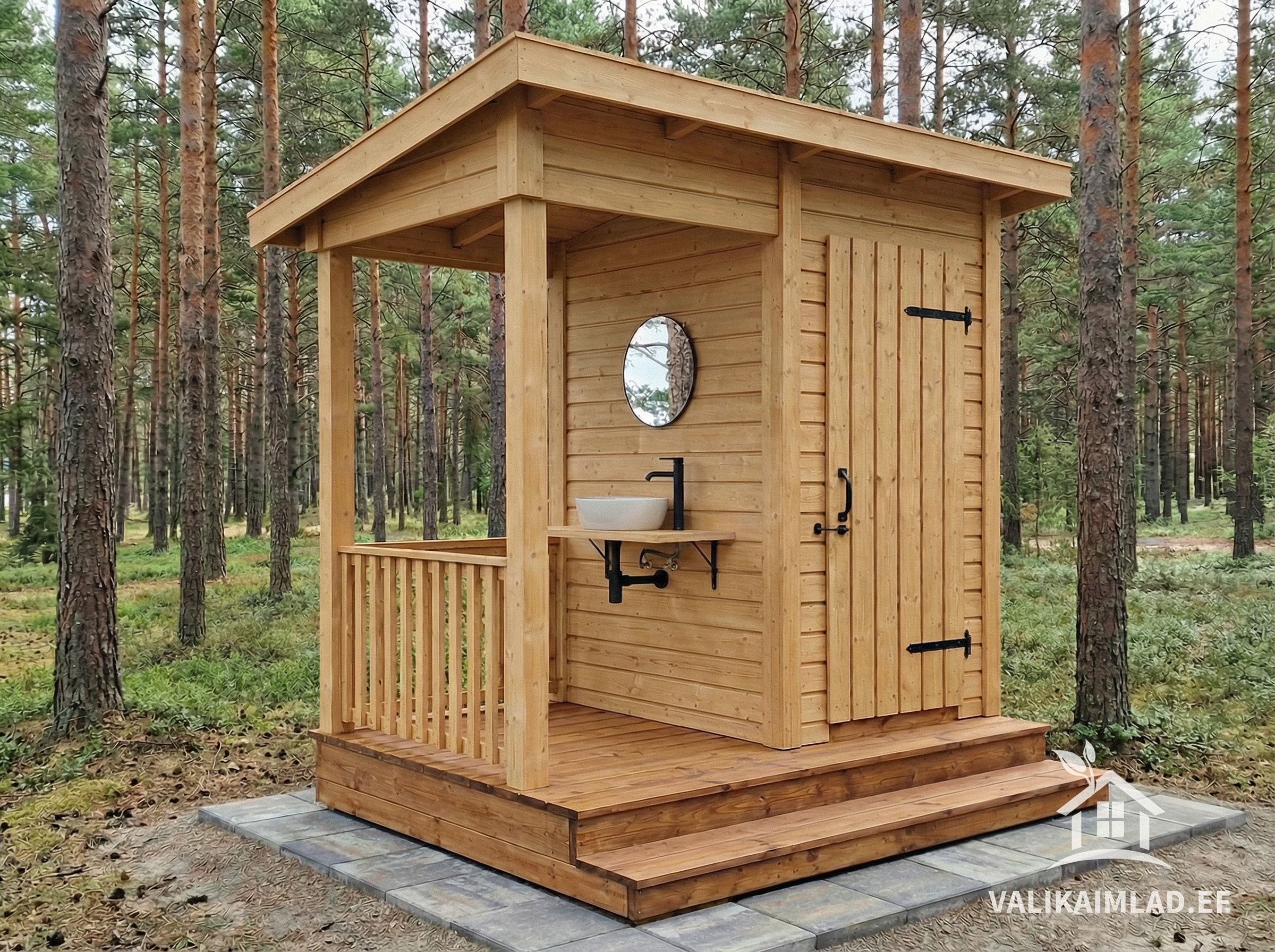 Iepriekš izgatavotu un uzstādītu āra tualešu attēli.